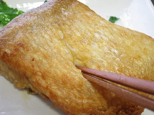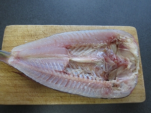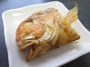 オススメはから揚げ 小麦粉と片栗粉を1:1で混ぜた粉をまぶして油で揚げてください。柔らかい身が絶品です。皮目をじっくり揚げてやると、鱗も食べることができます。ただし揚げ過ぎには注意。 |