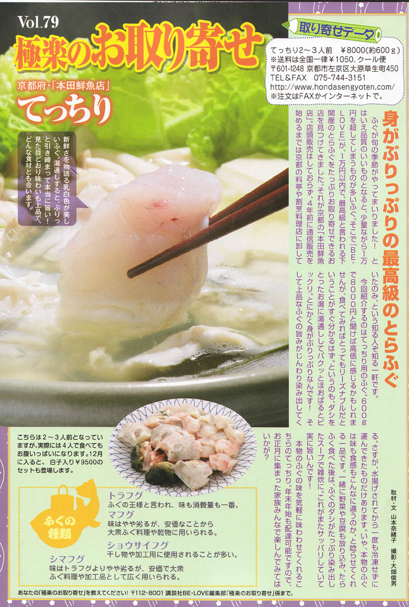 2011年3月27日放送の「ひるザイル」で、本田鮮魚店のぶりしゃぶが紹介されました