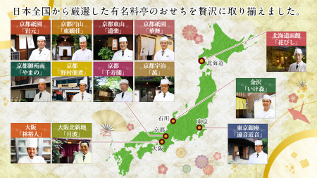 食べログ3.6点の祇園岩元を始め、京都の有名料亭など13の名店が監修するおせちを販売しています。冷凍じゃなく無添加なので味も安心。代引き手数料も無料。