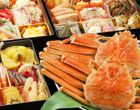 北海道のお店だけあって、北海道産を始めとした海の幸をふんだんに使ったおせちが人気。カニカニカニ!