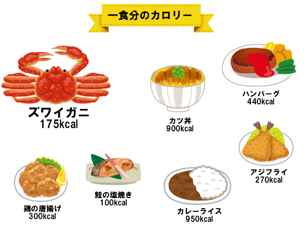 カニはどれも同じようなカロリーです。カニよりカロリーが低いのはアジぐらい。