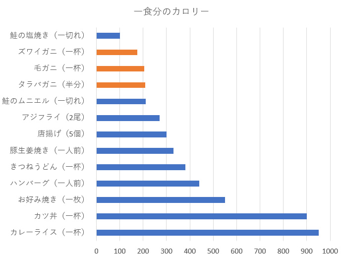 カニとその他食材のカロリー比較